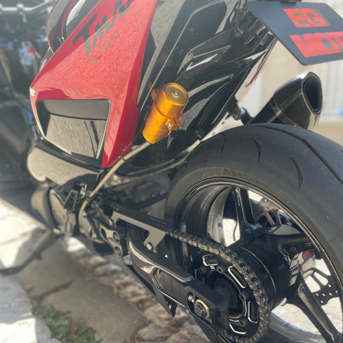 Concernant les étriers (même s’ils sont radiaux) nous pouvons passer sur des étriers Brembo plus performants. Enfin en comme pour les plus anciens, nous vous recommandons de changer les durites du TMAX. (Durites Avia : avec ou sans suppression du système ABS).